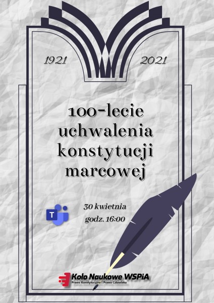 Skąd pomysł na taką konferencję? – Konstytucja marcowa uchwalona została 17 marca 1921 r. Opublikowana została w Dzienniku Ustaw 1 czerwca tego samego roku. Dlatego razem z naszym opiekunem stwierdziliśmy, że warto przed zbliżającym się 100-leciem konstytucji marcowej przypomnieć studentom ten dokument. Konstytucja ta stanowi pierwszą nowoczesną polską ustawę zasadniczą. Pierwszy raz przyznała władzę Narodowi, jako wszystkim obywatelom, bez względu na ich przynależność etniczną. Wprowadziła organy sprawujące władzę opartą na trójpodziale i wiele innych nowoczesnych rozwiązań – tłumaczy Urszula Cyrul, Rzecznik Koła Naukowego Prawa Konstytucyjnego i Praw Człowieka.