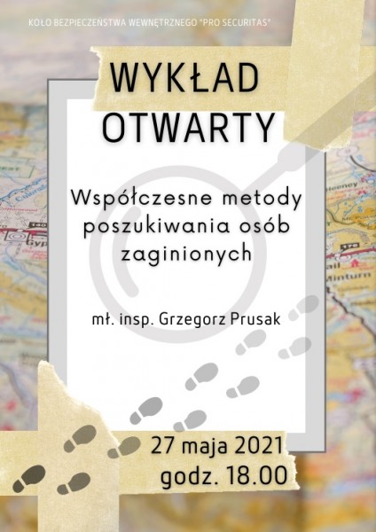 Wykład otwarty pt. „Współczesne Metody Poszukiwania Osób Zaginionych” odbędzie się w najbliższy czwartek 27 maja 2021 r. o godzinie 18:00. Organizatorem spotkania jest działające w WSPiA Koło Naukowe Bezpieczeństwa Wewnętrznego „Pro Securitas”.