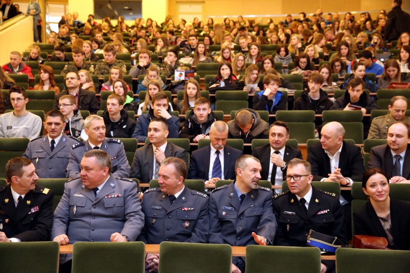 – Podkarpackie Młodzieżowe Święto Bezpieczeństwa z roku na rok ma coraz szerszy zasięg – mówił na początku imprezy prof. Jerzy Posłuszny, Rektor WSPiA. – Dziś śmiało możemy powiedzieć, że impreza na stałe wpisała się w kalendarz istotnych wydarzeń edukacyjnych, promujących bezpieczeństwo nie tylko na Podkarpaciu ale i w południowej Polsce. Najważniejszą ideą Święta jest stworzenie prawdziwej platformy wymiany poglądów, doświadczeń i wiedzy między przedstawicielami instytucji i służb sektora bezpieczeństwa wewnętrznego, pracownikami naukowymi oraz młodzieżą ponadgimnazjalną i studencką. Chcemy ich zainteresować problematyką szeroko rozumianego bezpieczeństwa wewnętrznego. Podkarpackie Młodzieżowe Święto Bezpieczeństwa Wewnętrznego, jak i Podkarpacka Młodzieżowa Akademia Prawa i Bezpieczeństwa to główne elementy realizowanego przez WSPiA programu „Bezpieczna Przyszłość” – tłumaczył prof. Jerzy Posłuszny.