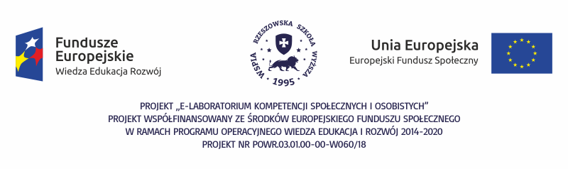 Projekt „E-Laboratorium Kompetencji Społecznych i osobistych” jest współfinansowany ze środków Europejskiego Funduszu Społecznego w ramach Programu Operacyjnego Wiedza Edukacja i Rozwój 2014-2020.