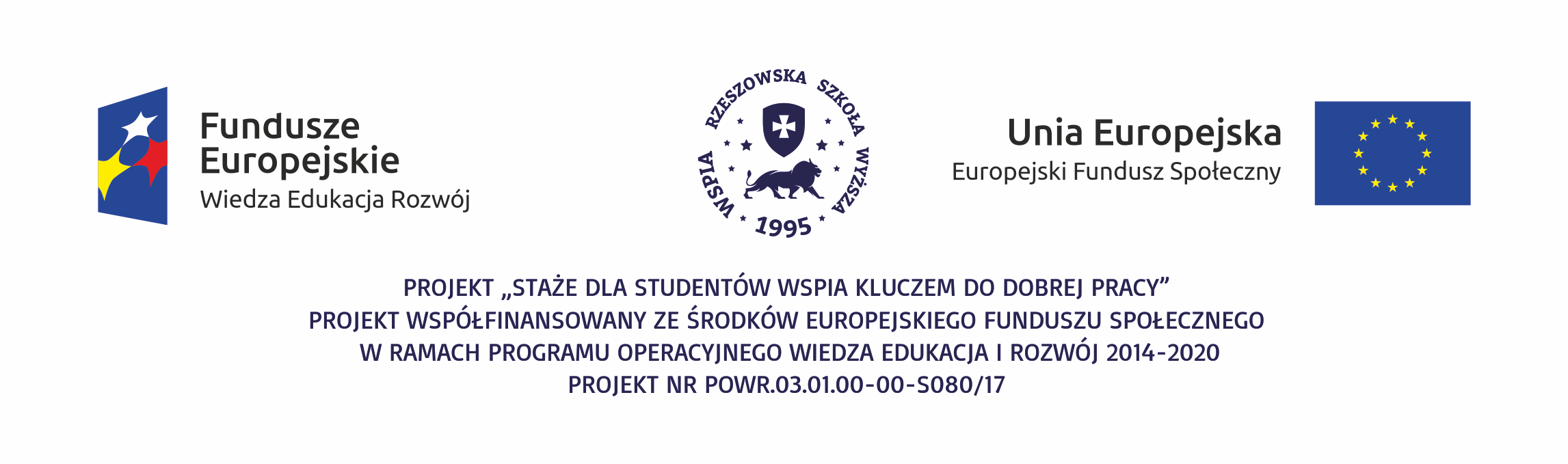 Wysokiej jakości programy stażowe dla12 studentów studiów stacjonarnych I Stopnia Kierunku Zarządzanie w roku akademickim 2017/2018 - studenci III ROKU.
